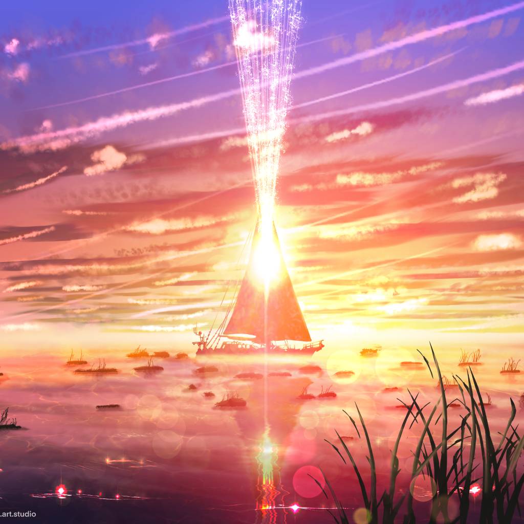 Matahari terbenam memancarkan warna-warni indah di langit, menciptakan pemandangan memukau dengan pantulan cahaya indah.